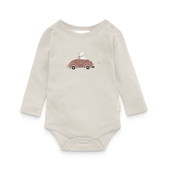 In a gorgeous natural tone with simple yet playful print, this is the perfect all in one for the classically styled boys!