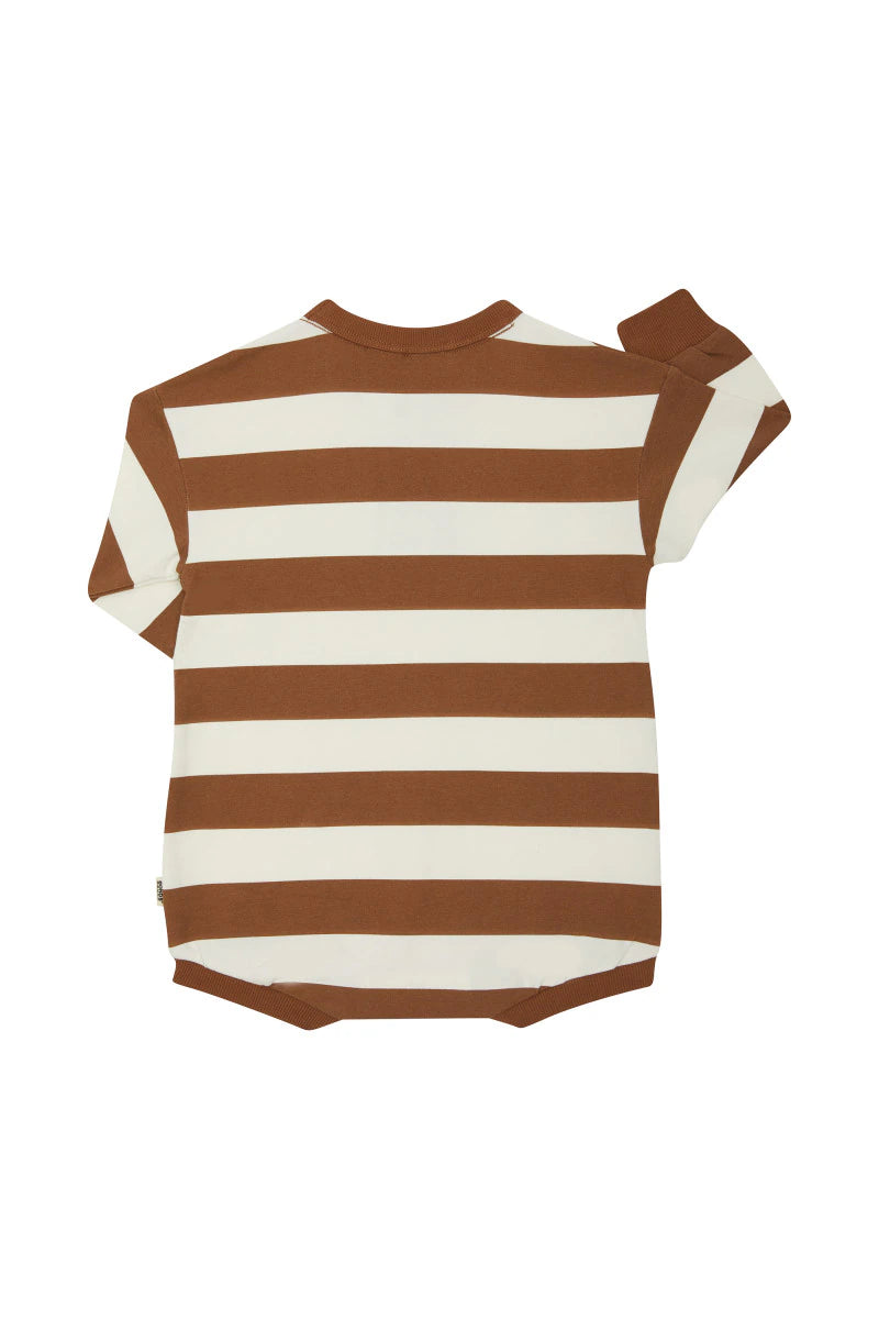 Bonds Soft Threads Terry Slouchy Suit - Horizontal Rugby Stripes Spiced Tea