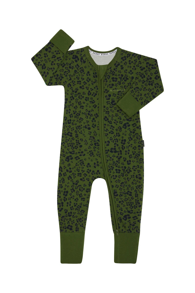 Bonds Zip Wondersuit - Leopard Luxe Khaki