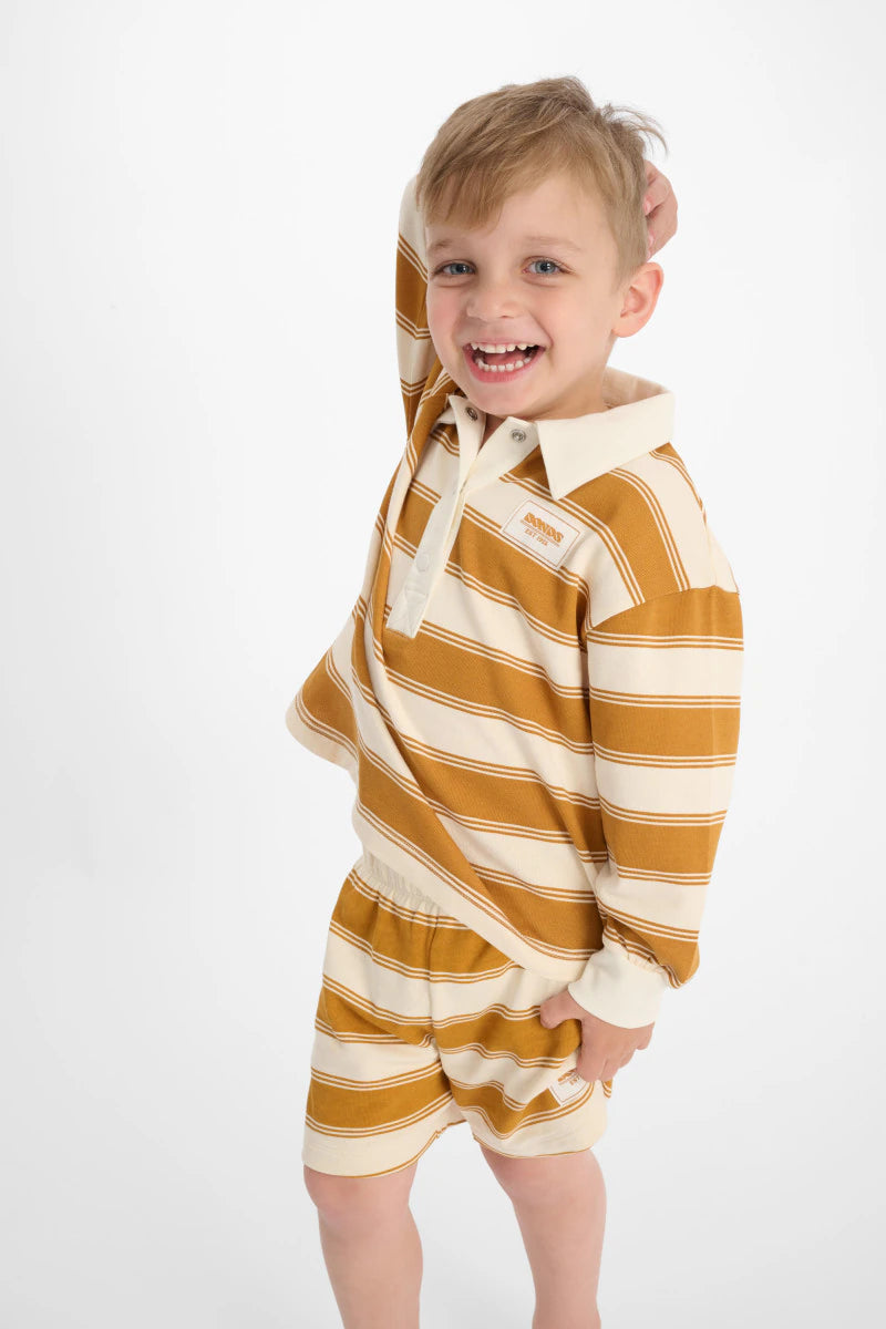 Bonds Kids Rugby Shorts - Rugby Stripe Gold Rush Levitating