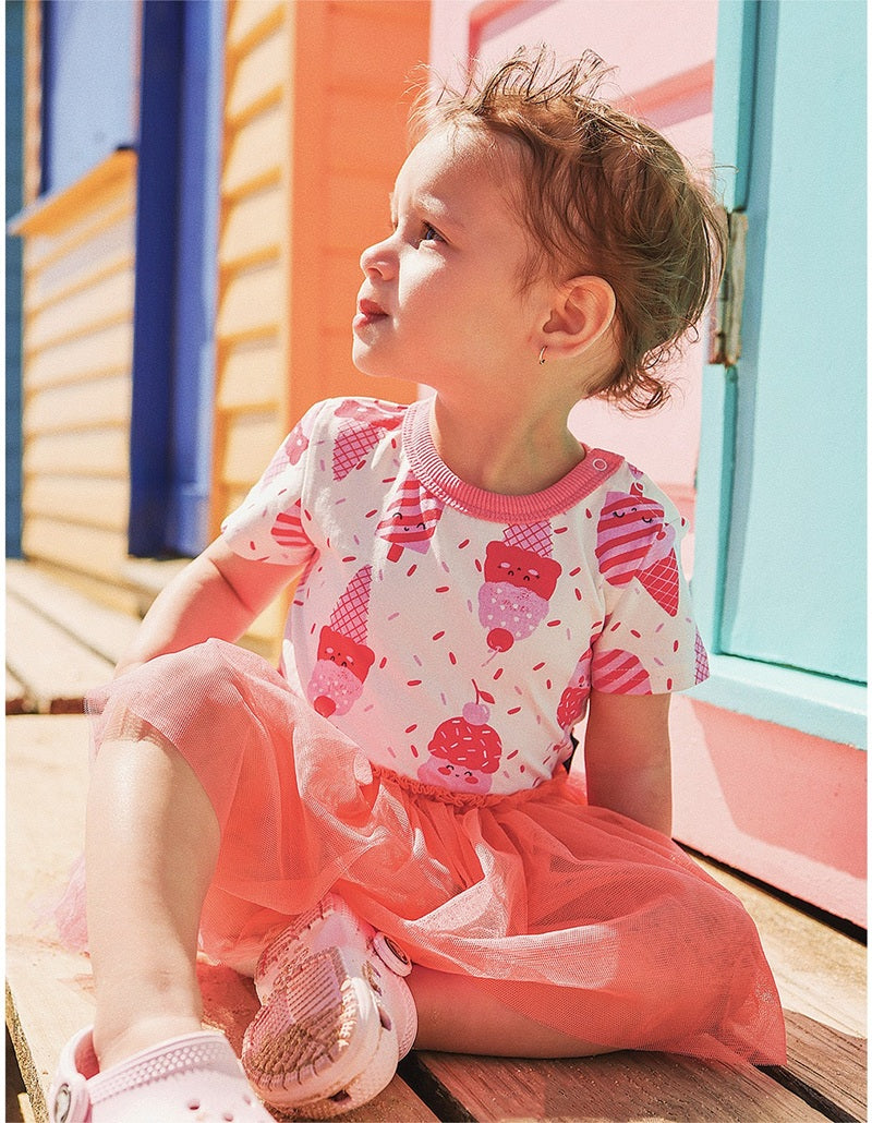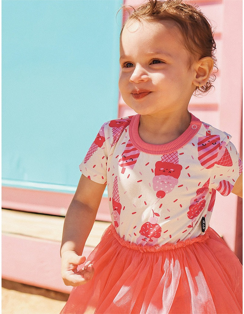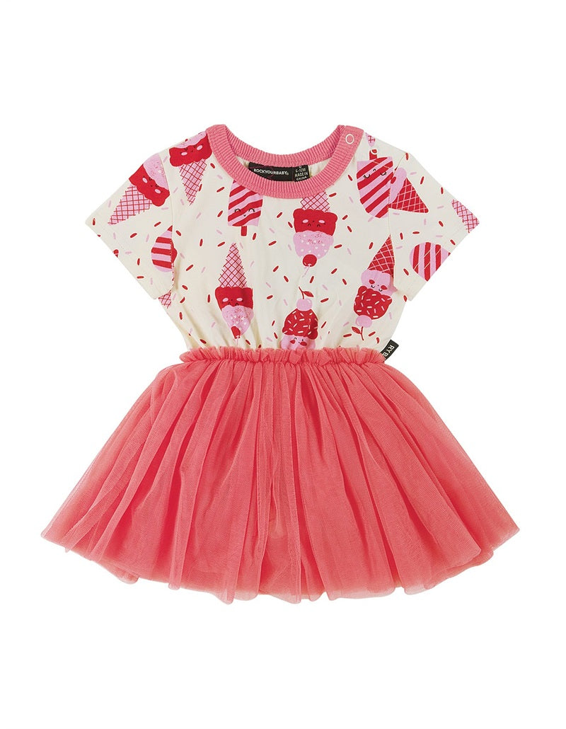 Rock Your Baby Cherry Ice Cream Dance Bodysuit Dress - Cream
