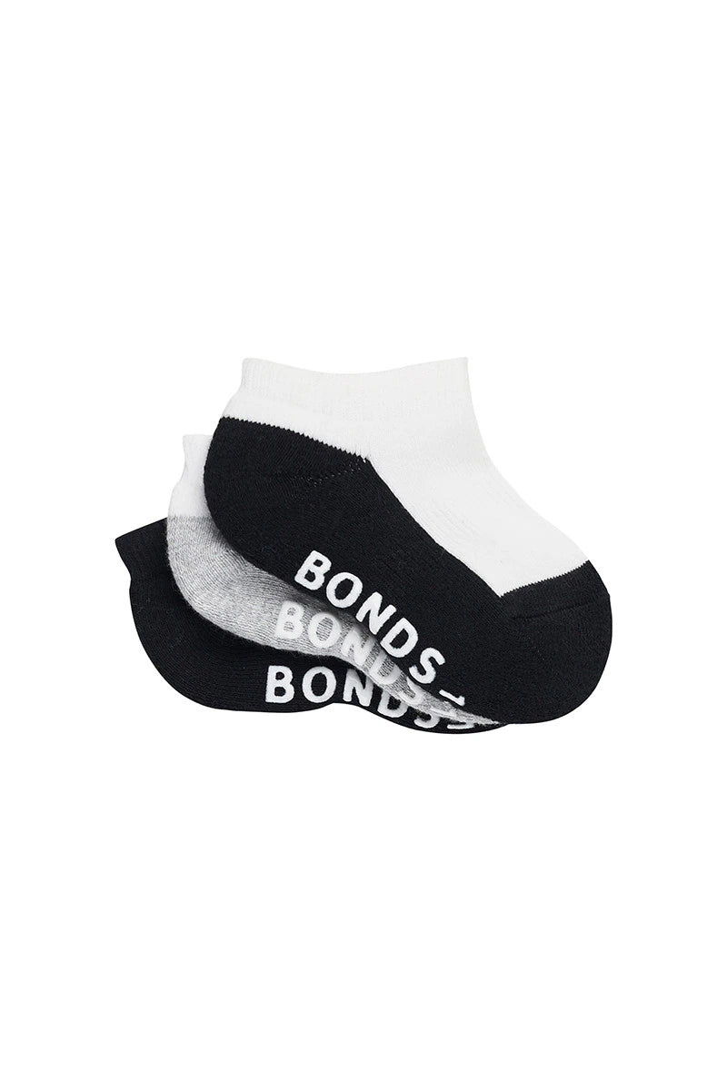 Bonds Baby Cushioned Low Cut 3 Pack - Black/Grey/White