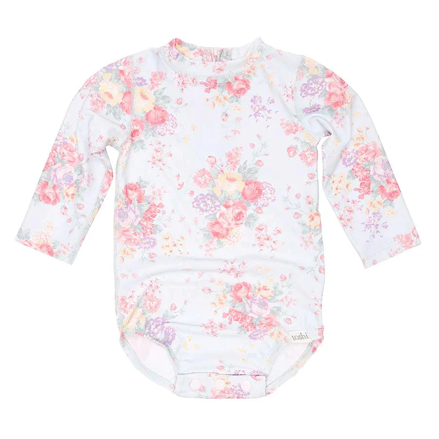 The beauty, functionality and elevated quality for which Toshi is traditionally renowned, is crafted into an exquisite baby swimwear collection. Rated UPF 50+, Toshi Swim offers maximised sun protection and water safety. The finest quality fabrication is fast drying and chlorine & salt water friendly. The adorable Toshi seamless Swim Onesie features bottom opening press studs for ease of nappy change and back neck zip for ease of dressing. A high neckline and long sleeves ensure greater sun protection. An original and exclusive Toshi print design is featured.
