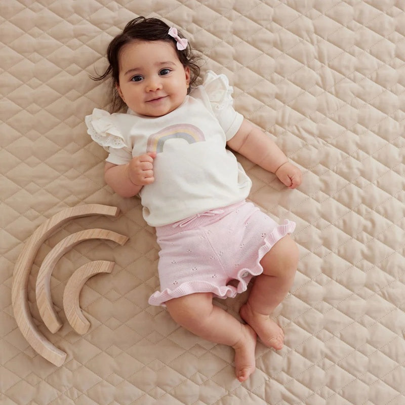 Aster & Oak Rainbow Print Flutter Tee - Natural