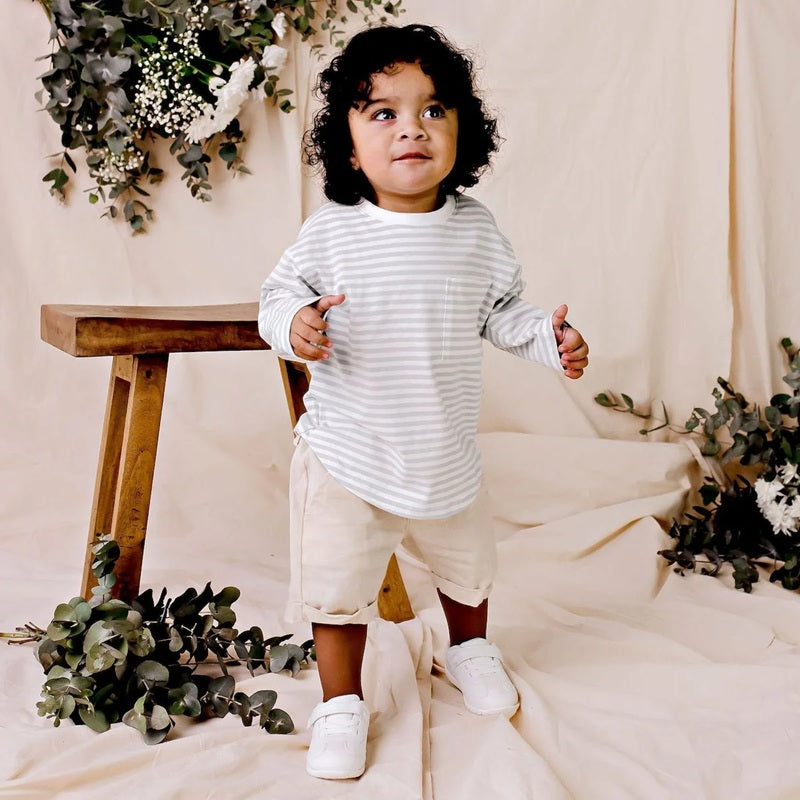 Designer Kidz Harvey Long Sleeve Stripe T-Shirt - Ice Blue
