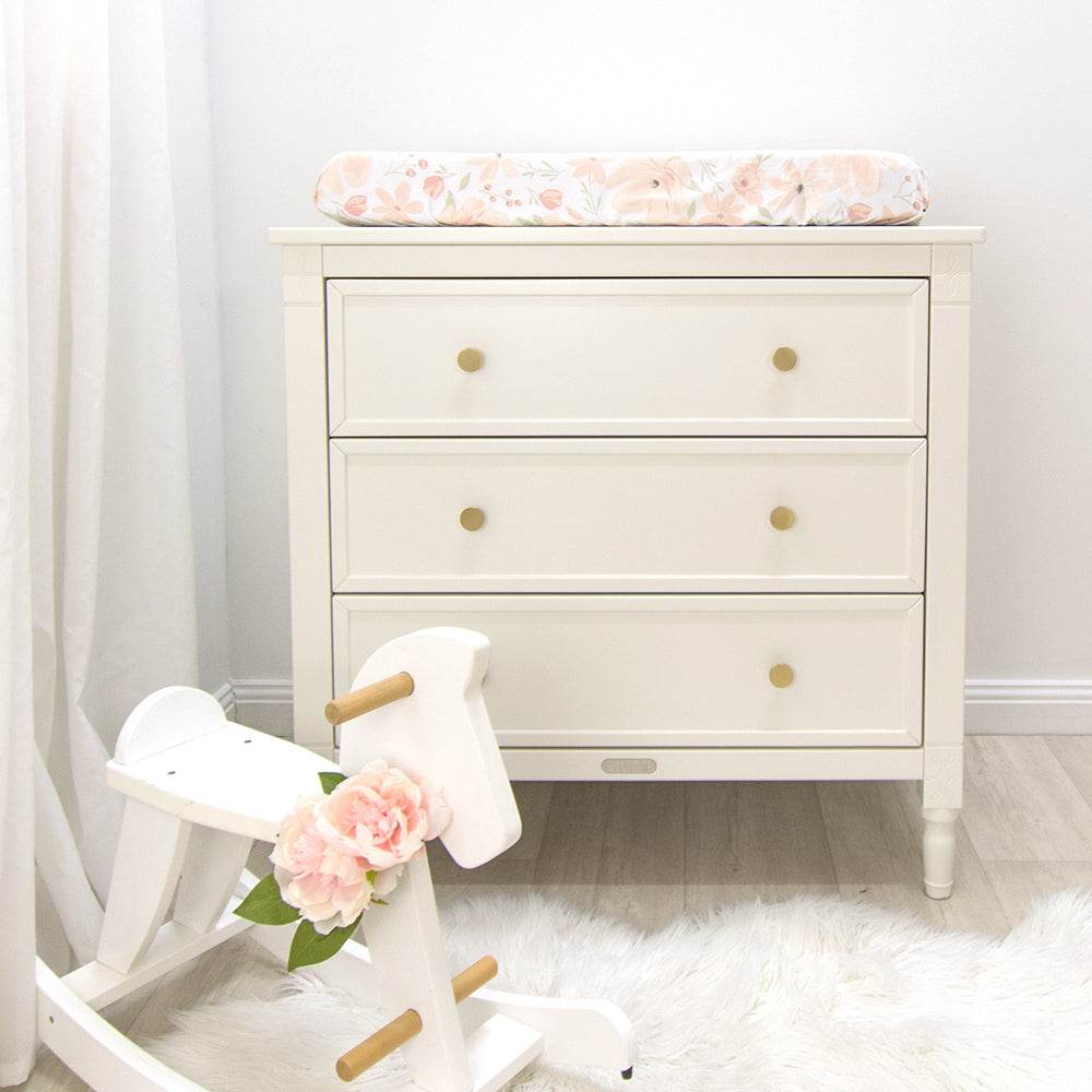 Cushion your baby during change time with our 100% cotton change pad cover with absorbent terry towelling middle. Featuring elasticated sides to provide a secure fit, it allows you to change your baby confidently. Match back with our other coordinating Meadow accessories to create the nursery of your dreams!