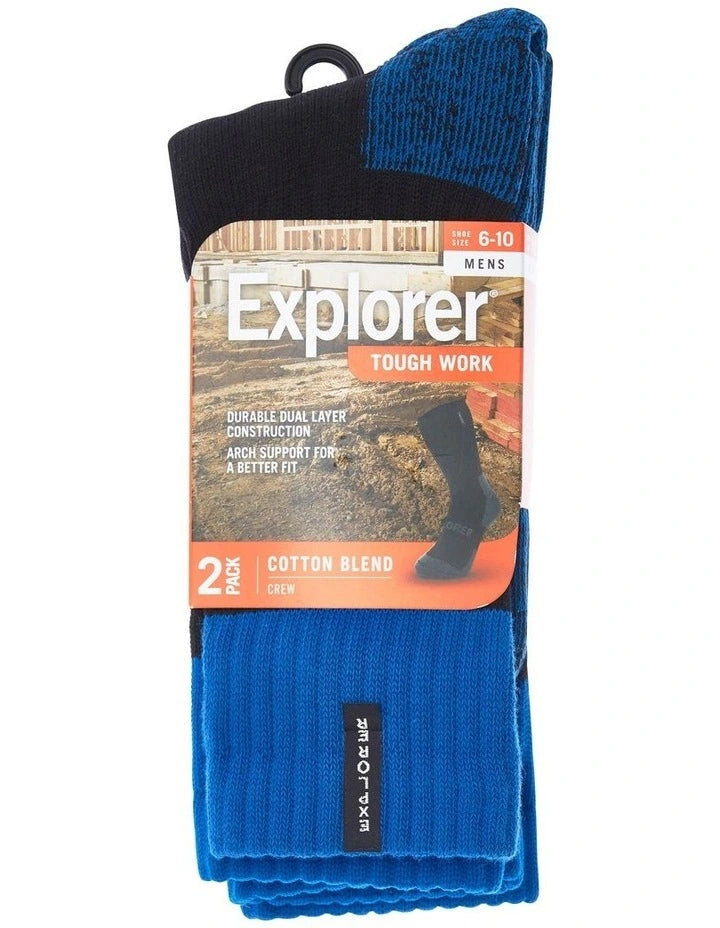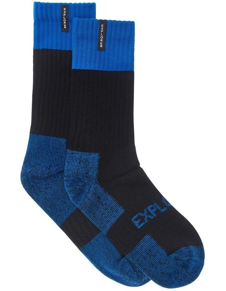Explorer Tough Work Crew Sock 2 Pack - Blue/Black