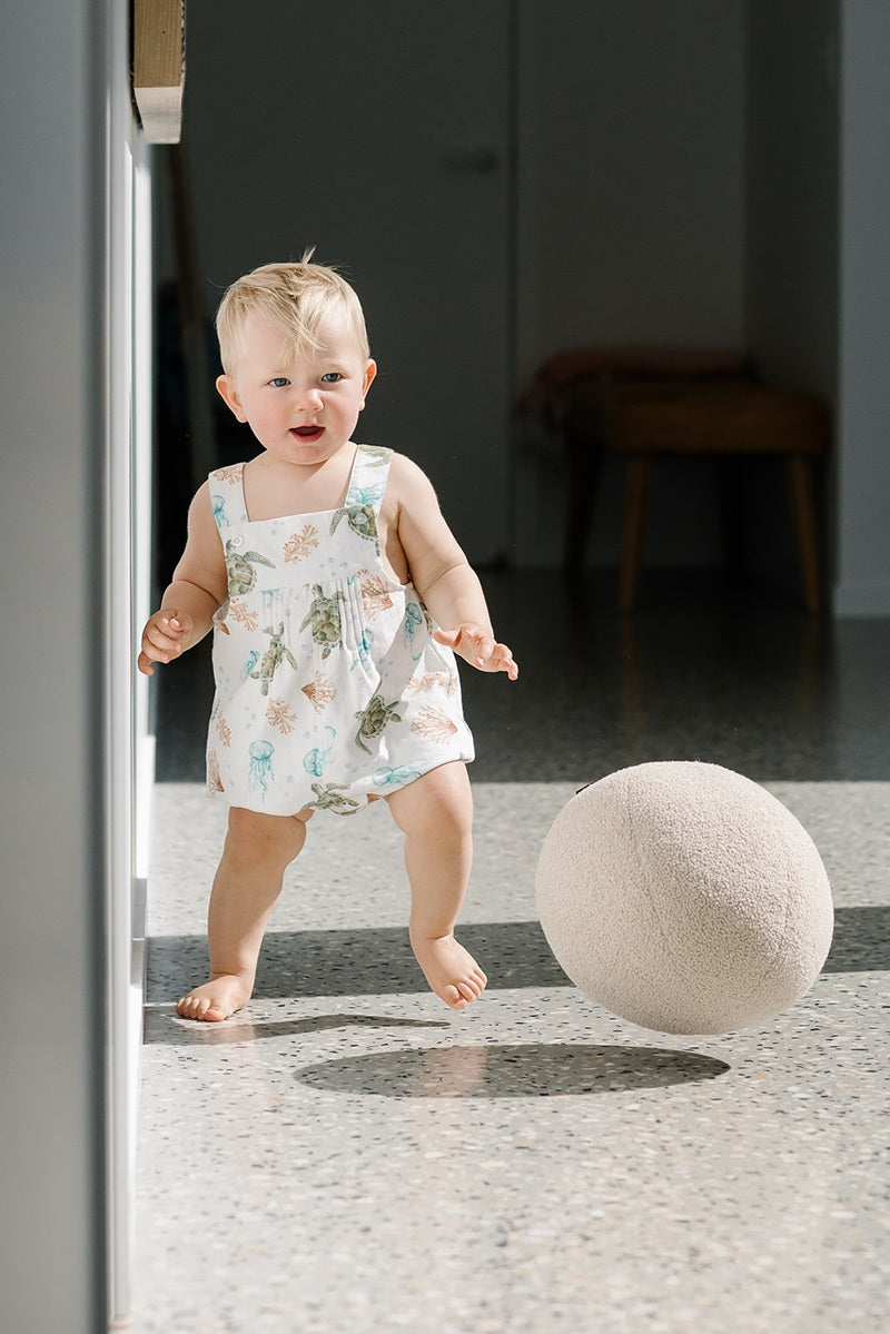 The 'Ezra' Unisex Overalls are the perfect mix of practical and fun! They have an elastic leg for a bloomer look.. and super convenient inner leg snap panel (for those countless nappy changes and toilet training days).