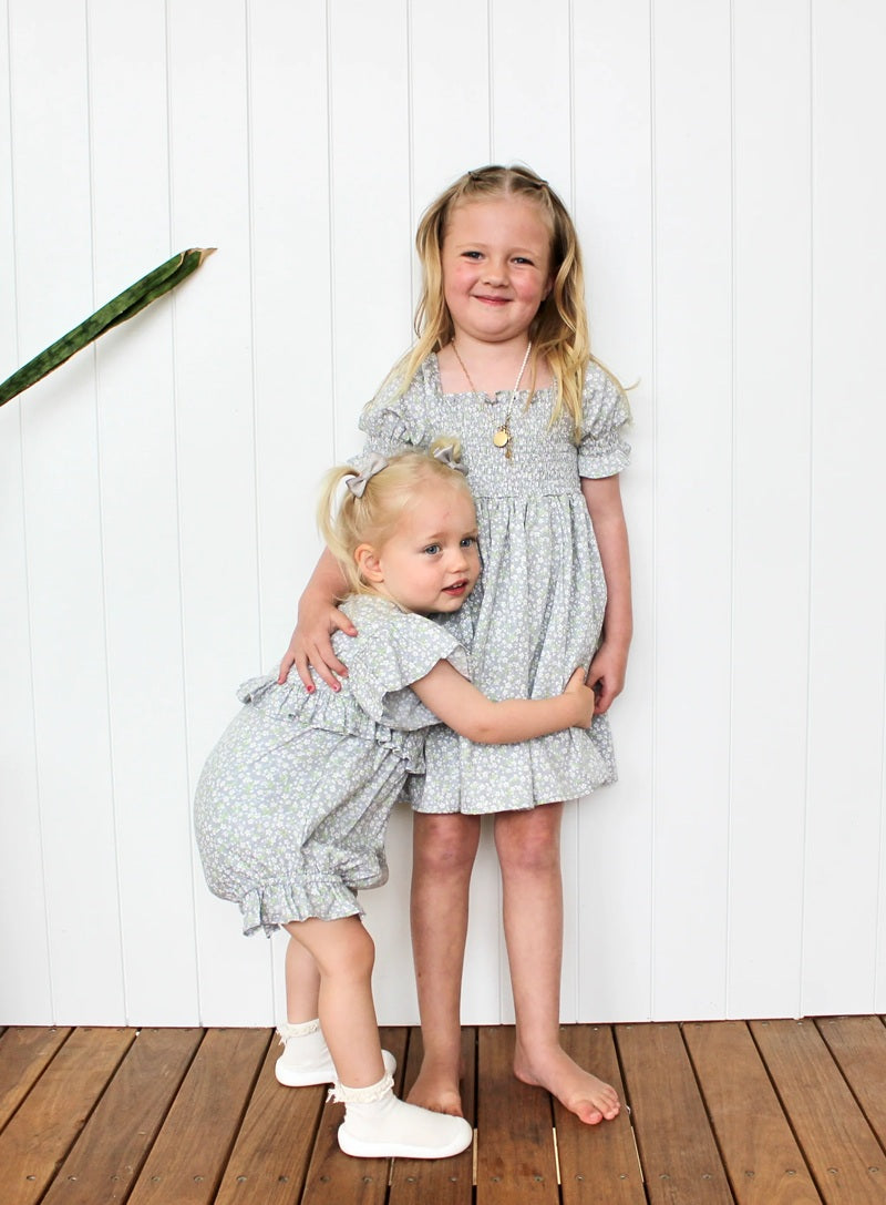 The 'Piper' Ruffle Playsuit are the perfect mix of practical and fun!  It has an elastic hem creating a bubbled bloomer look, ruffles, and super convenient inner leg snap panels (for those countless nappy changes and toilet training days).