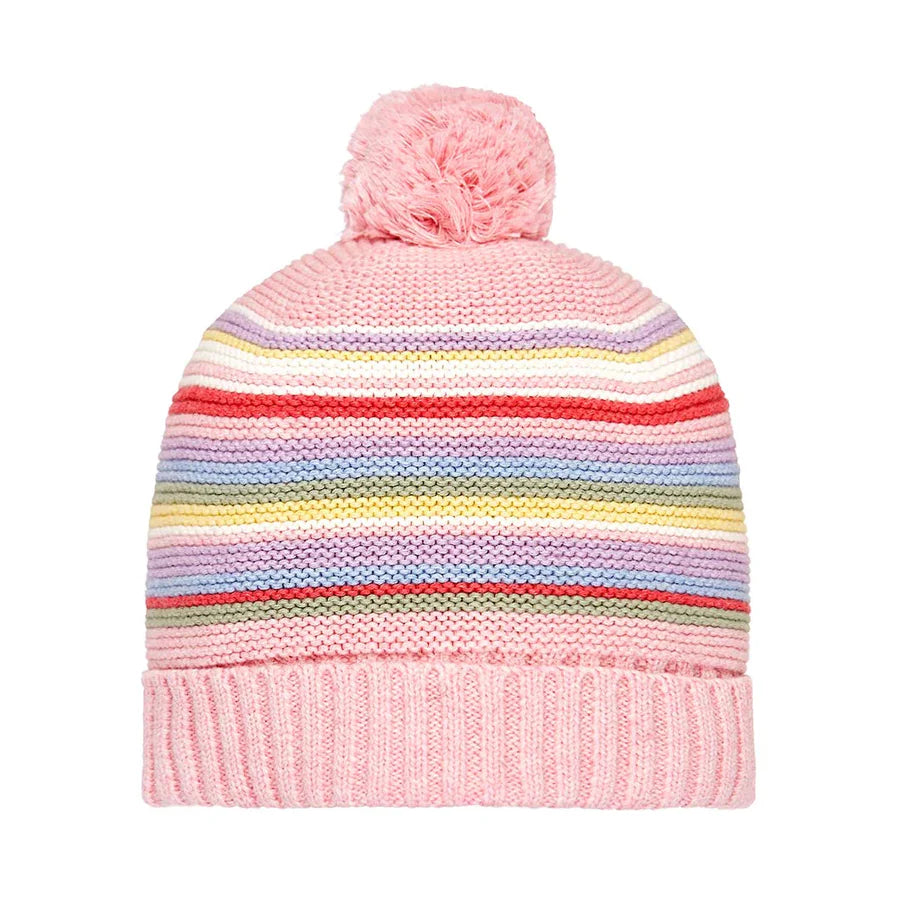 A vibrant rainbow jacquard pattern distinguishes this whimsical Toshi beanie.