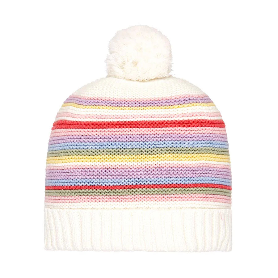 A vibrant rainbow jacquard pattern distinguishes this whimsical Toshi beanie.