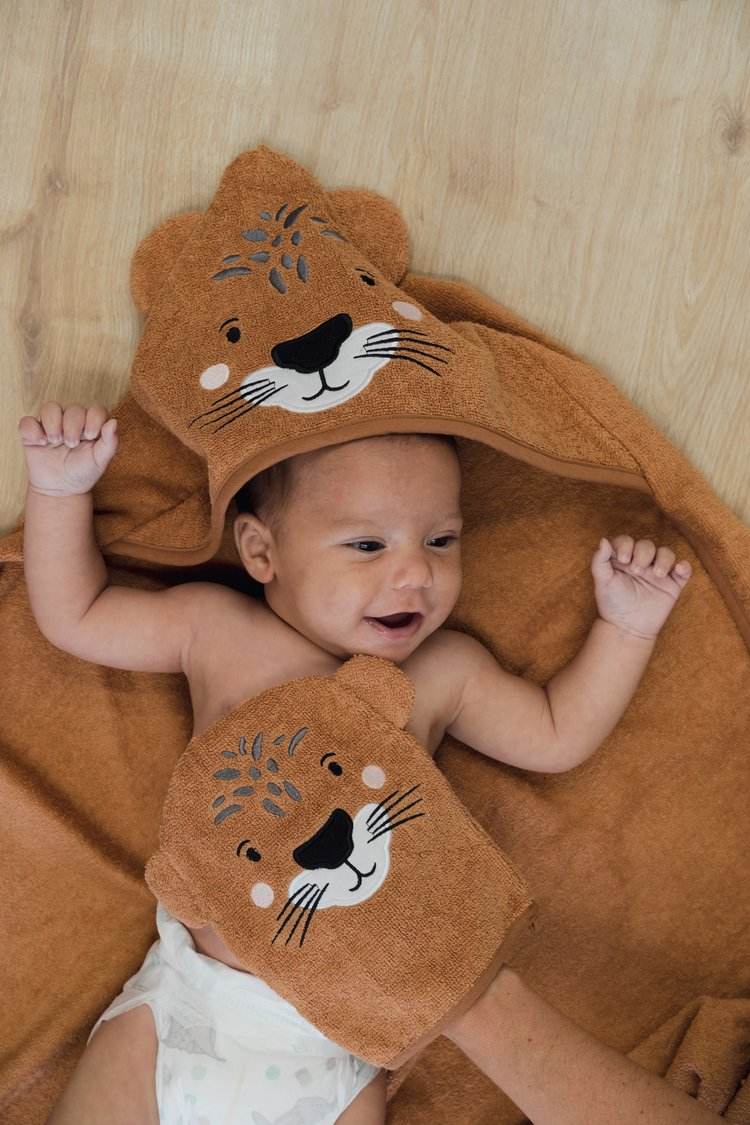 The Mister Fly Cheetah Wash Mitt is a gorgeous choice for your little one!