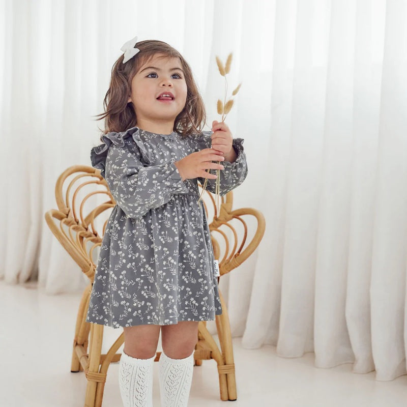 Beautifully crafted from 100% GOTS certified organic cotton our Mia Floral Ruffle Dress is gentle on the skin and oh so soft providing luxurious comfort. In gorgeous winter inspired hues of olive and ivory with hand illustrated florals and complimented with ruffles, this dress is a stunning addition to your little girl's wardrobe.