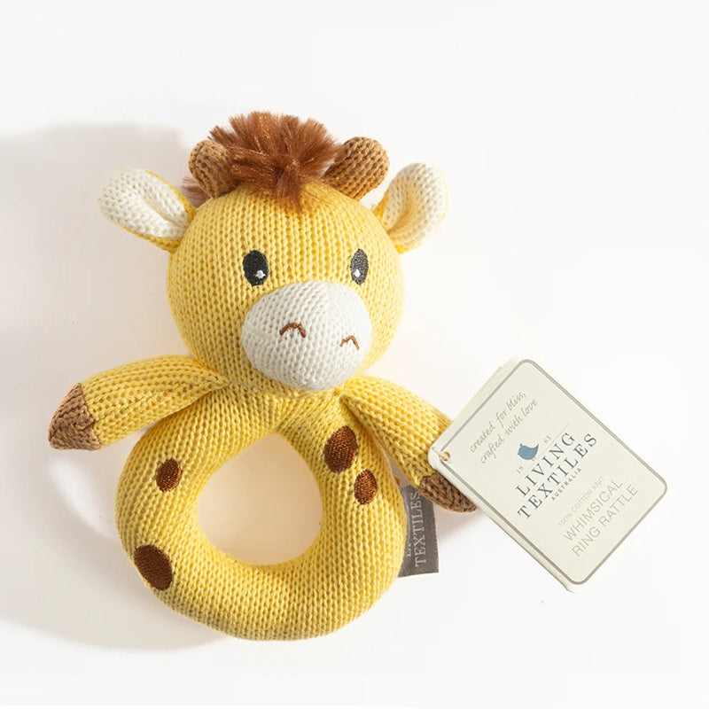 Living Textiles Knitted Ring Rattle - Noah the Giraffe