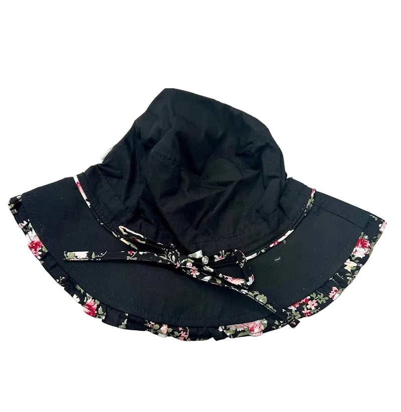 The hat has a flattering frilled border, floral ties and is made from quality cotton. A head tie creates adjustable sizing and the chin tie secures the hat and offers ease of wear. Features - Chin ties to secure hat - Head tie for adjustable sizing - This hat is reversible with printed lining - Frilled border Composition - 100% Cotton