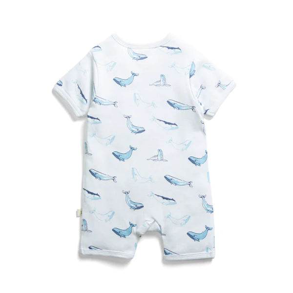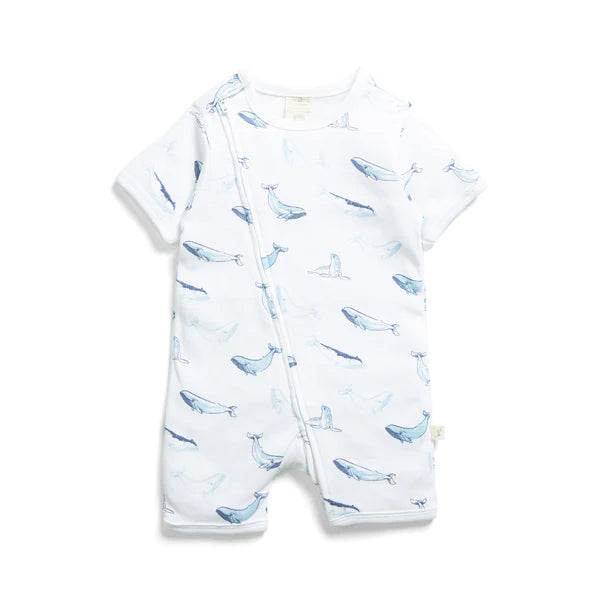 Tiny Twig Organic Short Sleeve Zipsuit - Dolphin Print