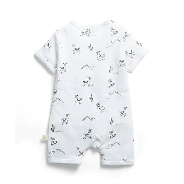 Tiny Twig Organic Short Sleeve Zipsuit - Lama Adventure Print